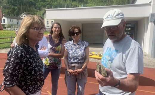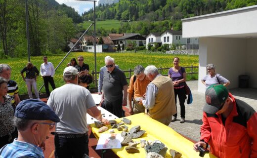 Am Nachmittag entführte GeoGuide und Lokalkenner Ruedi Kohler die Vereinsmitglieder in die faszinierende Welt der Geologie des Taminatals. Im “Fenster von Vättis” sind die ältesten Gesteine der Tektonikarena Sardona zu sehen, darüber lässt sich die Erdgeschichte der letzten 300 Mio. Jahre eindrücklich in den Gesteinsschichten ablesen. Ruedi Kohler präsentierte die ganze Vielfalt an Gesteinen des Taminatals, wobei einige davon während den Eiszeiten von Graubünden über den Kunkelspass mit dem Gletscher “eingewandert” sind. Lisi Noé erläuterte schliesslich in der Ausstellung “BergeBeben-BergeStürzen” den Zusammenhang zwischen der Alpenbildung und den Erdbeben in der Welterberegion Sardona. Schliesslich berichtete sie aus eigener Erfahrung über den Umgang der Bevölkerung mit den im Taminatal omnipräsenten Naturgefahren.